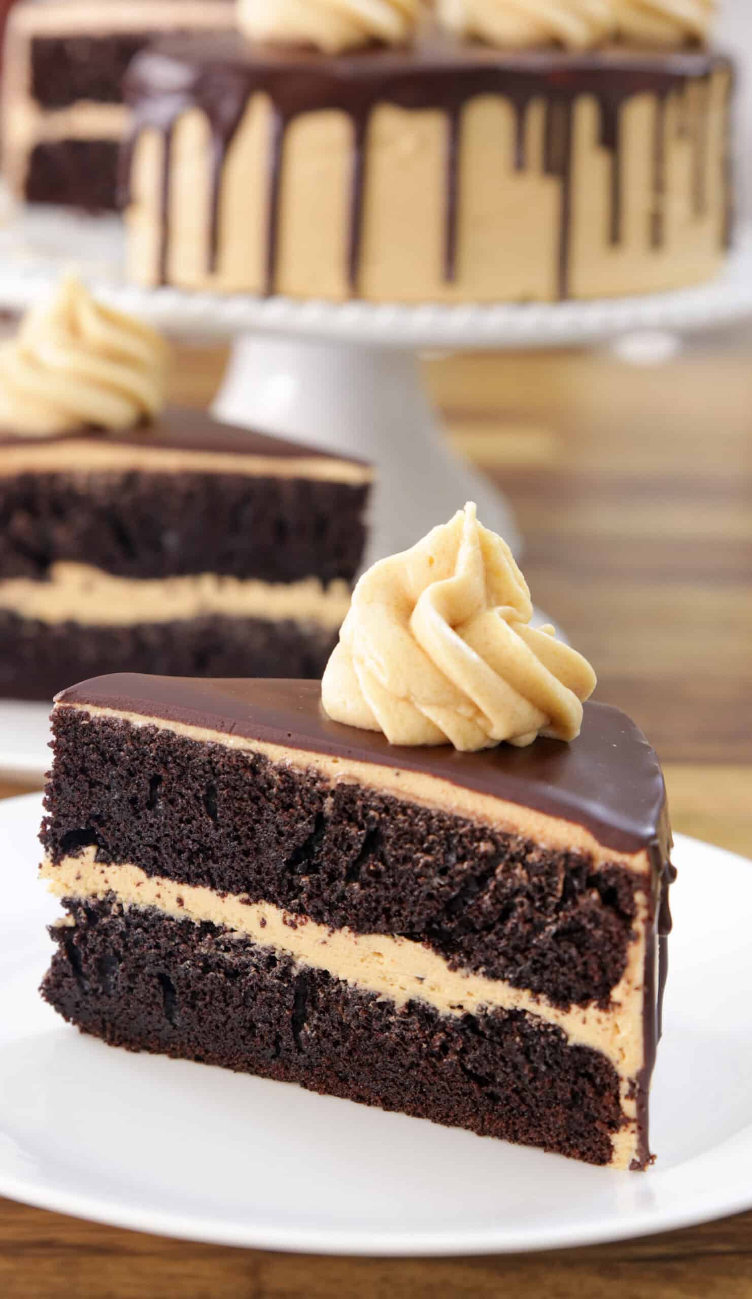 Salty-sweet, fluffy, fudgy perfection awaits with my decadent Chocolate Peanut Butter Cake recipe. Between two towering layers of moist chocolate cake with peanut butter frosting and chocolate ganache, this show-stopping celebratory centerpiece is sure to satisfy any sweet tooth.